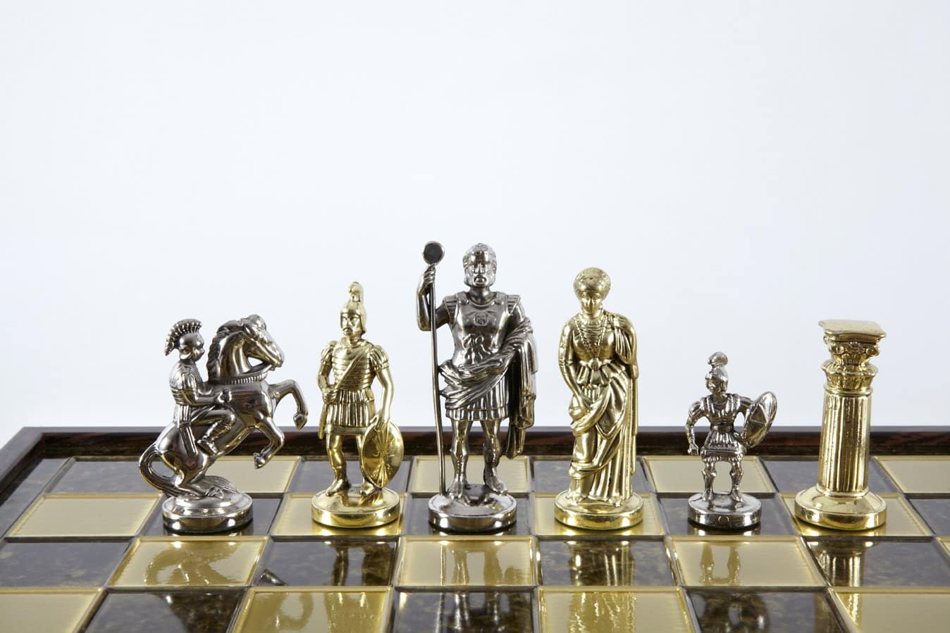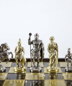 Ein wunderschönes großes Schachset, das von einer Epoche der griechischen Antike inspiriert ist, die von verheerenden Kriegen zwischen den Völkern beherrscht war.
