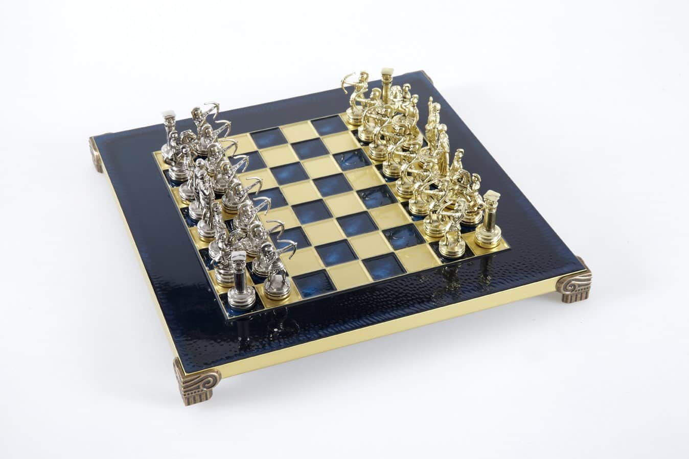 Dieses qualitativ hochwertige Set kommt aus Griechenland und wurde dort von Kunsthandwerkern angefertigt, die seit 1968 auf die Herstellung von Schachspielen spezialisiert sind.