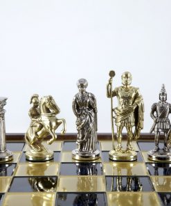 Dieses qualitativ hochwertige Set kommt aus Griechenland und wurde dort von Kunsthandwerkern angefertigt, die seit 1968 auf die Herstellung von Schachspielen spezialisiert sind.