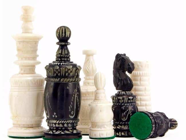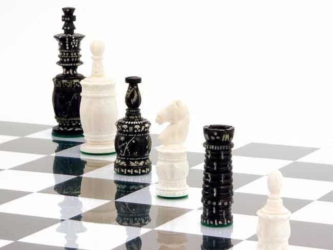 Ein schönes Schachspiel, das von Hand aus Kamelknochen gefertigt wurde.