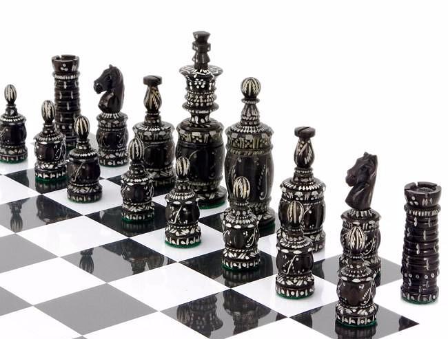 Ein großes Schachset aus einem seltenen Material mit vielen aufwendigen Details.