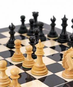 Ein hochwertiges Schachset aus Ebenholz, das sich mit einem großen Schachbrett kombinieren lässt und ihrer Einrichtung Charakter verleiht.